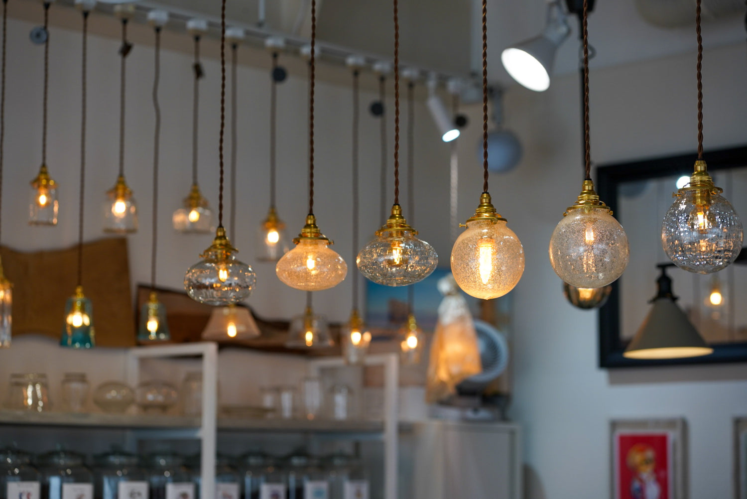Glass imeca琵琶湖の水草を灰にして、硝子に組み込むことで琵琶湖由来の色合いが美しい、『biwaco iro(琵琶湖彩)』を中心とした吹きガラスのペンダントライトをご紹介します。一つ一つて作りで型を使わないため、商品の個性が特徴です。