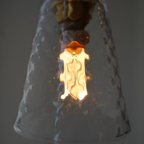 さざ波硝子店とKIKKAKEKKOがコラボレーションして誕生したペンダントライトは、スウェーデン硝子を使用しており、厚みを持たせることで光の屈折がより自然で優しい照明効果を生み出します。LEDは、エジソンバルブのLED電球ノスタルジアシャンゼリを使用するなど、細部までこだわり抜いたデザインとなっています。